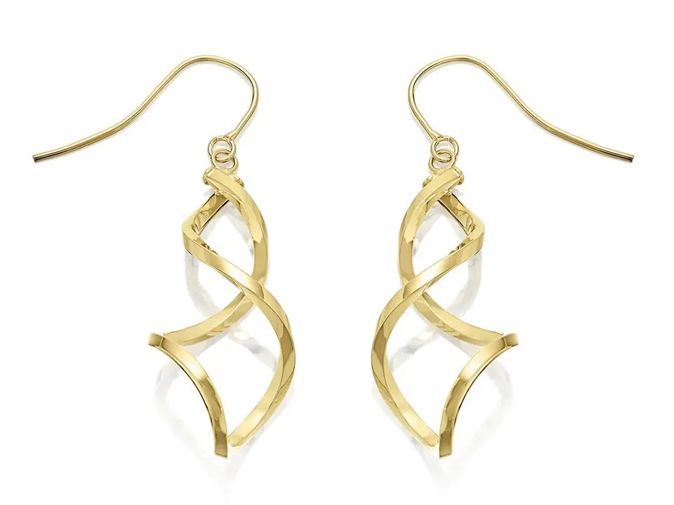 9ct Gold Spiral Hook Wire Earrings - 50mm drop - G1418