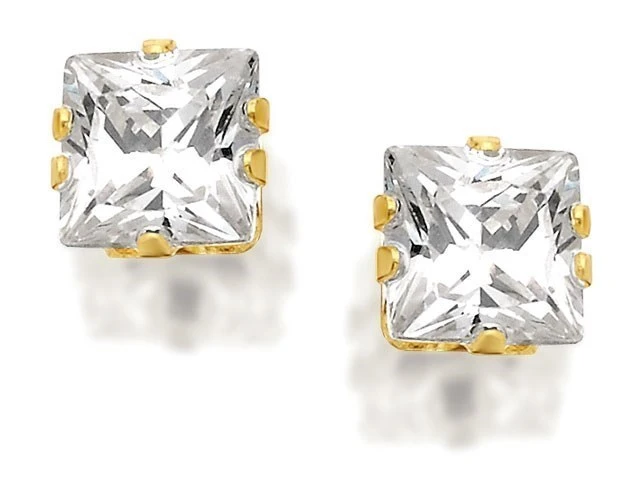 9ct Gold Square Cubic Zirconia Stud Earrings - 4mm - G2729