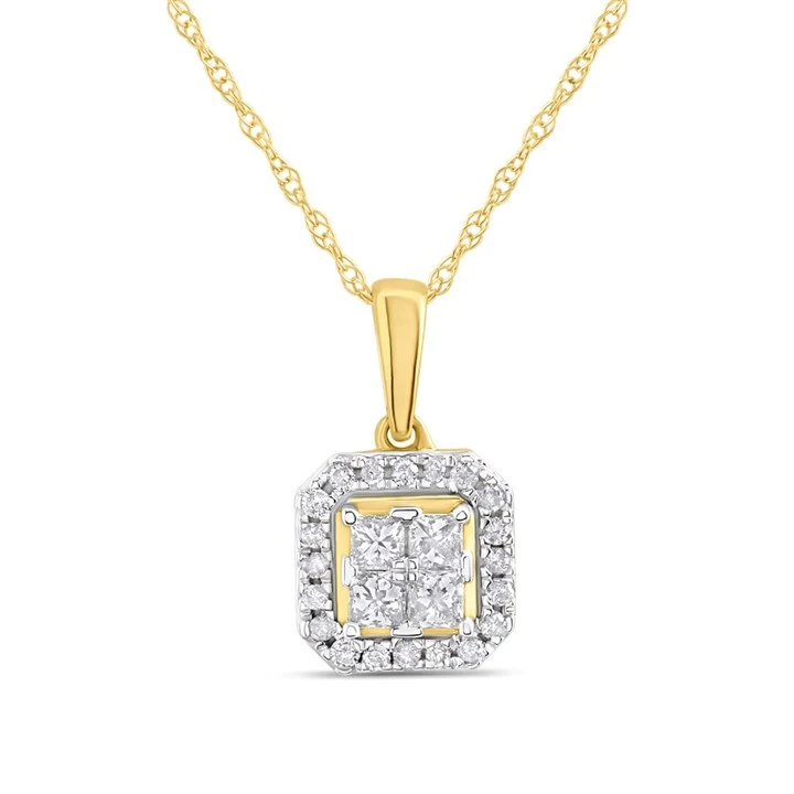 9ct Gold Square Princess Cut Centred Diamond Cluster Necklace- 1/4 carat - D95162