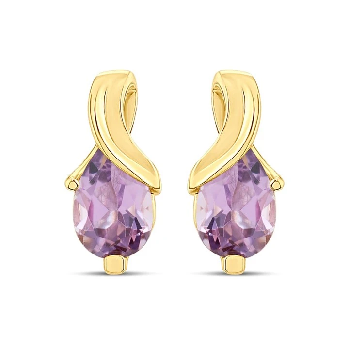 9ct Gold Swirl Amethyst Stud Earrings - G0297