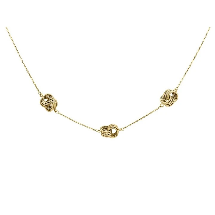 9ct Gold Textured Knot Station Necklace - 16in - R9539