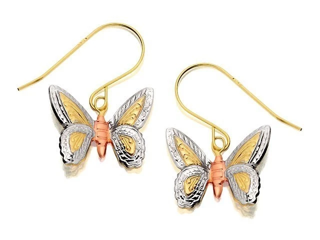 9ct Gold Three Colour Butterfly Hook Wire Earrings - 15mm drop - G1205