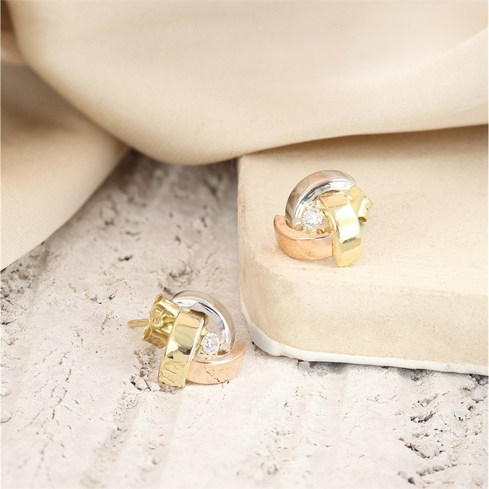 9ct Gold Three Colour Cubic Zirconia Knot Stud Earrings - G4612