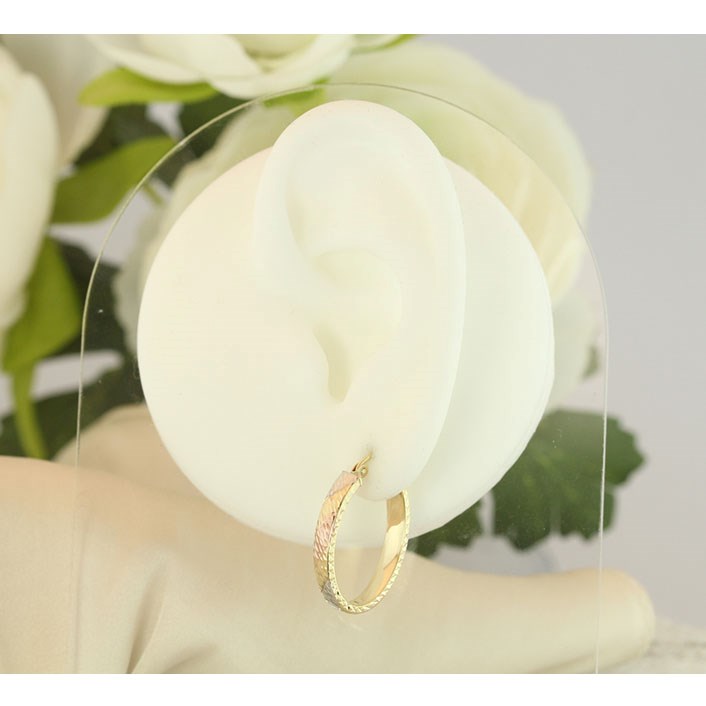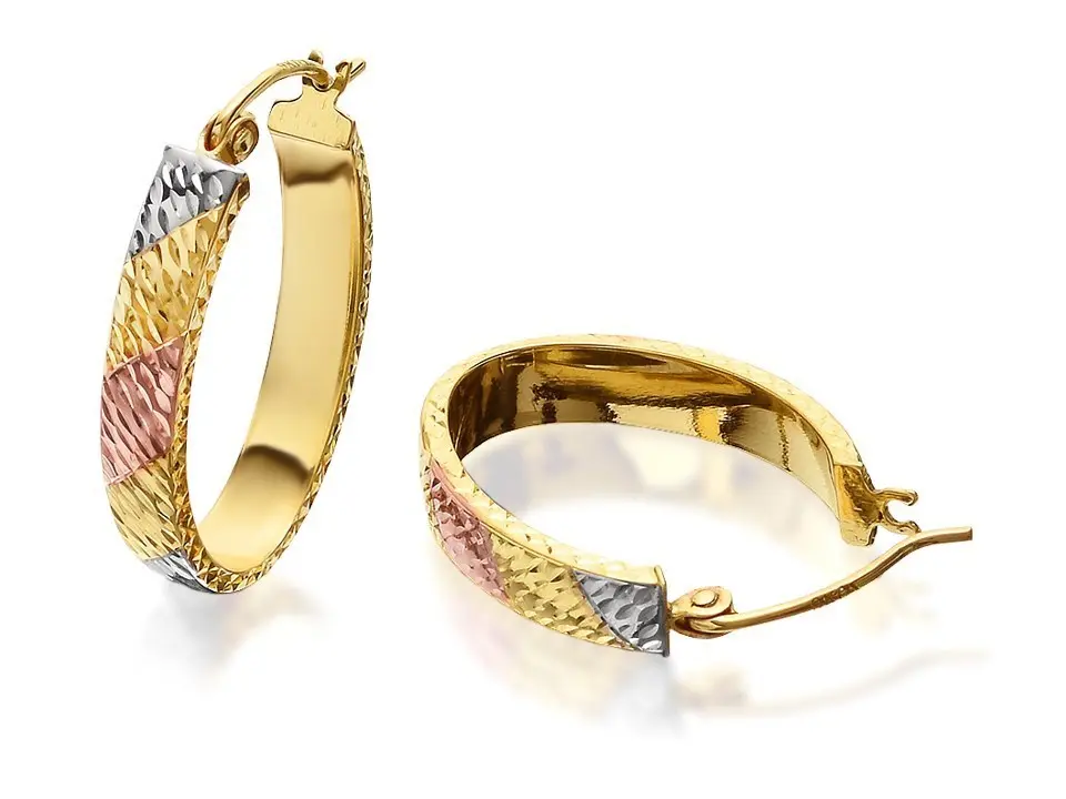 9ct Gold Three Colour Diamond Cut Oval Hoop Earrings - 18mm - G4914
