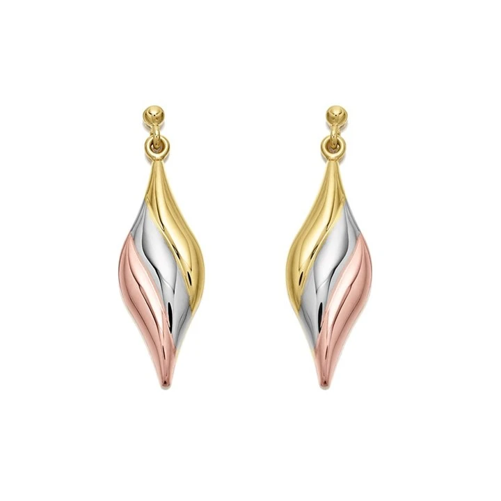 9ct Gold Three Colour Flame Drop Earrings - 24mm drop - G4817