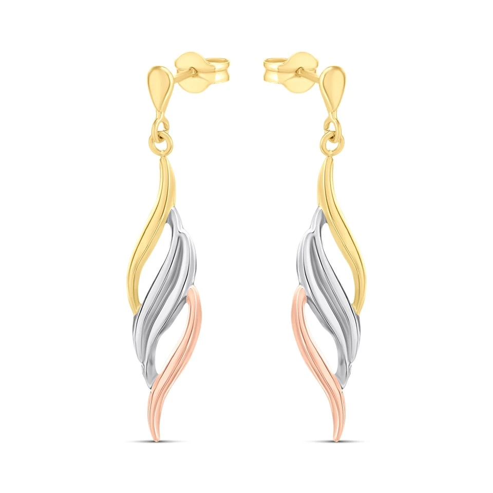 9ct Gold Three Colour Flame Drop Earrings - 35mm drop - G4815