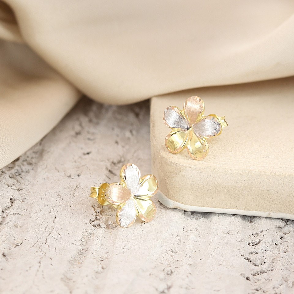 9ct Gold Three Colour Flower Stud Earrings - 11mm - G4626