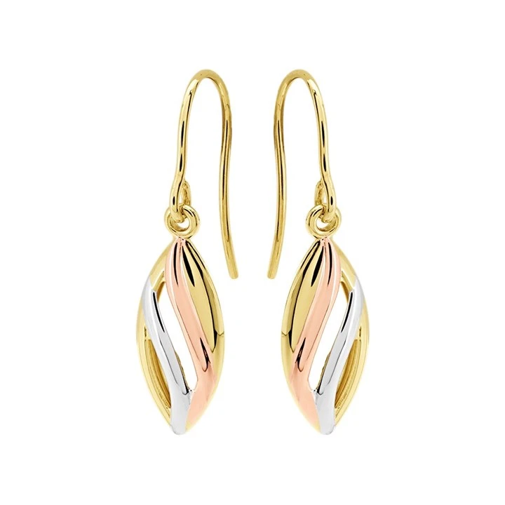 9ct Gold Three Colour Leaf Hook Wire Earrings - 28mm drop - G48118