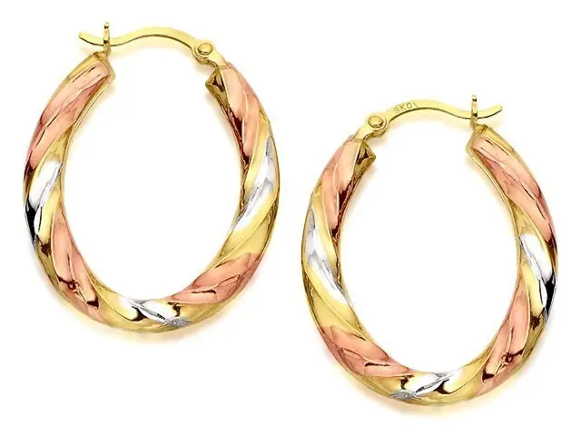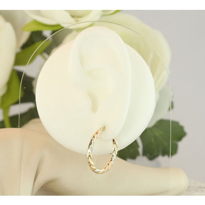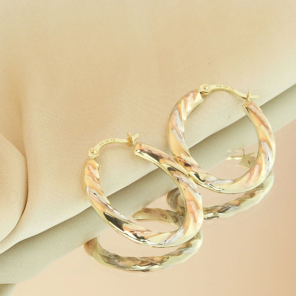 9ct Gold Three Colour Ribbed Hoop Earrings - 24mm - G4925