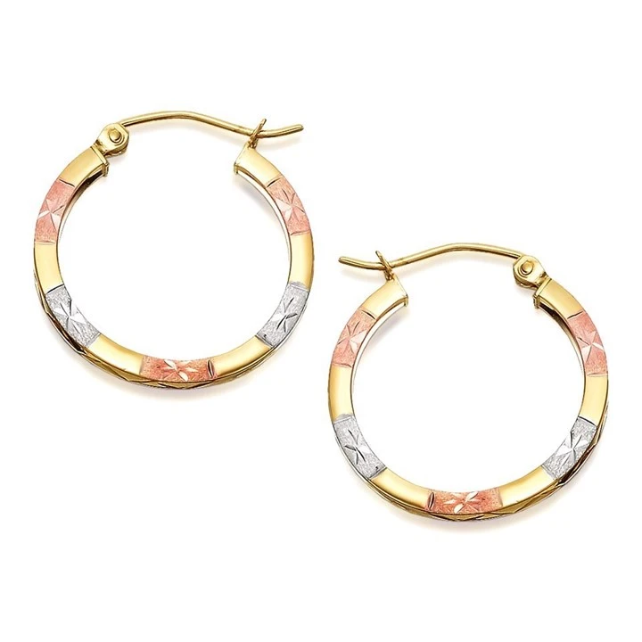 9ct Gold Three Colour Square Edge Hoop Earrings - 20mm - G4916
