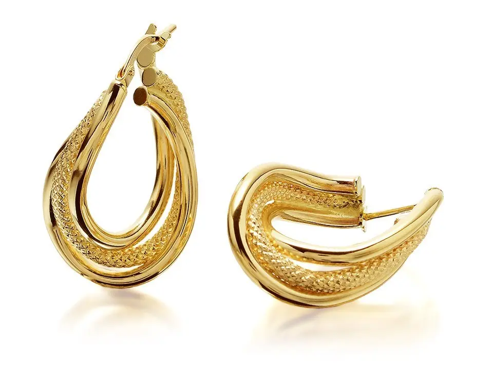 9ct Gold Triple Strand Twisted Hoop Earrings - 25mm - G2503