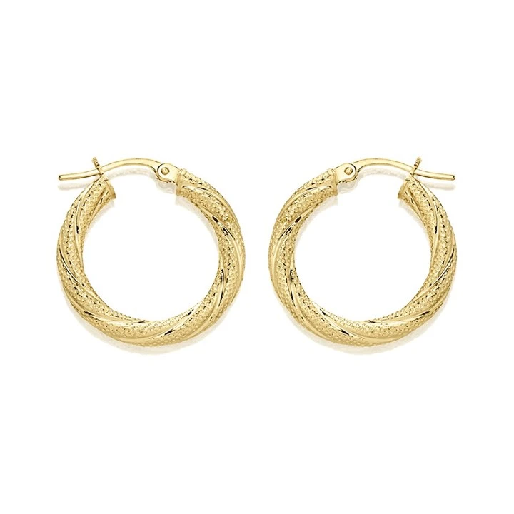 9ct Gold Twist Pattern Hoop Earrings - 20mm - G2461