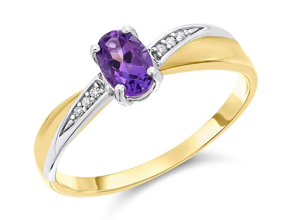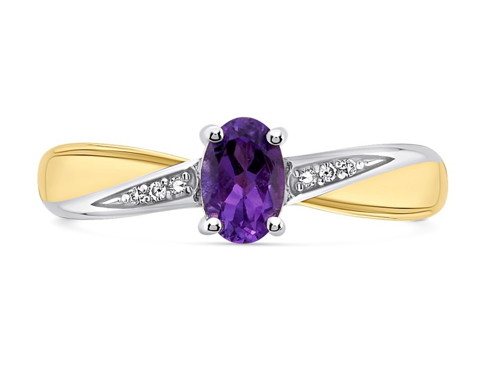 9ct Gold Two Colour Amethyst And Diamond Ring - D8458