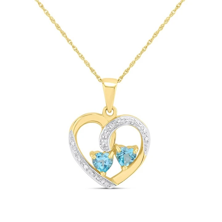 9ct Gold Two Colour Blue Topaz And Diamond Heart Necklace - R8390