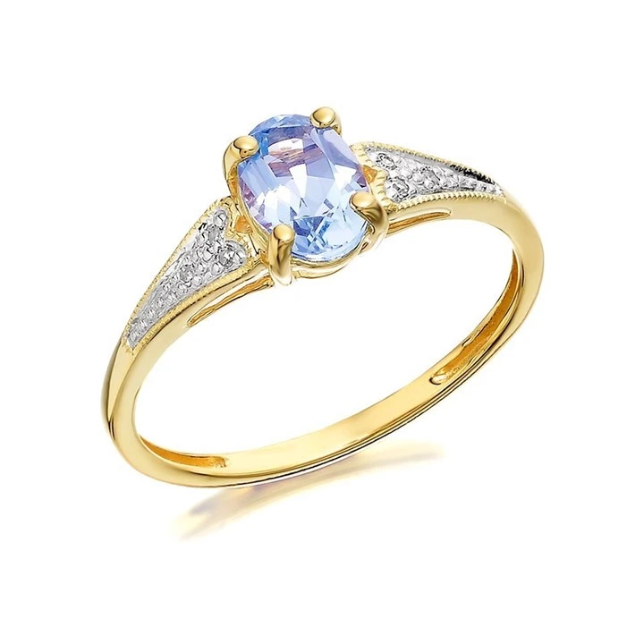 9ct Gold Two Colour Blue Topaz And Diamond Ring - EXCLUSIVE - R0422