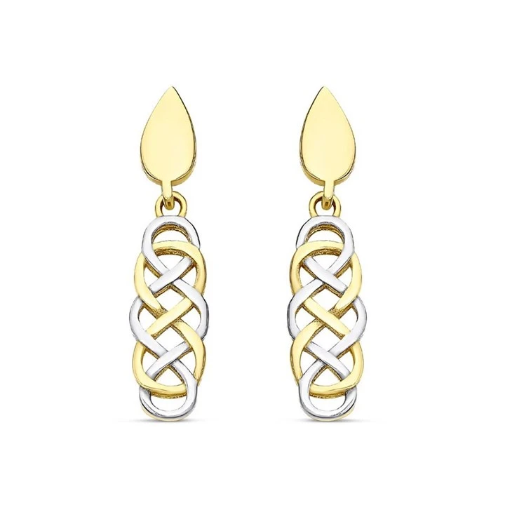 9ct Gold Two Colour Celtic Drop Earrings - 22mm drop - G1233