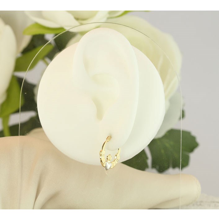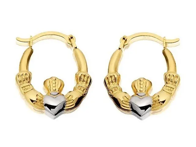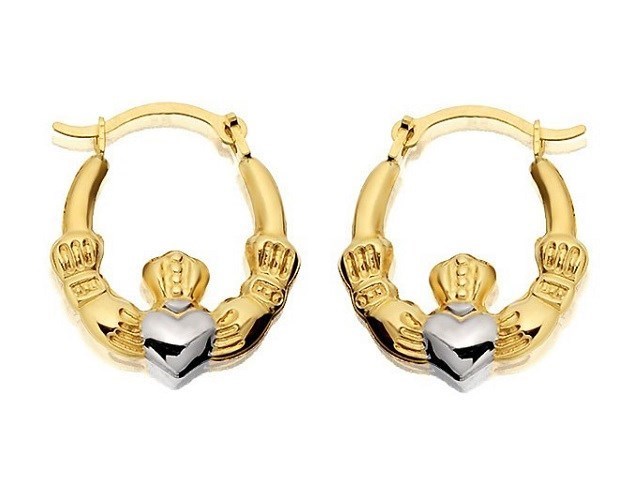 9ct Gold Two Colour Claddagh Creole Hoop Earrings - 13mm - G4373