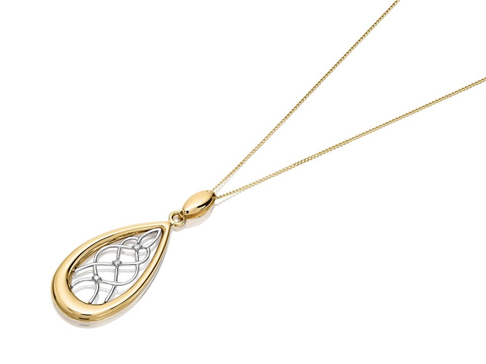 9ct Gold Two Colour Cubic Zirconia Celtic Necklace - R8736