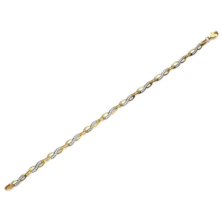 9ct Gold Two Colour Cubic Zirconia Figure Of Eight Bracelet - 7.5in - G8307