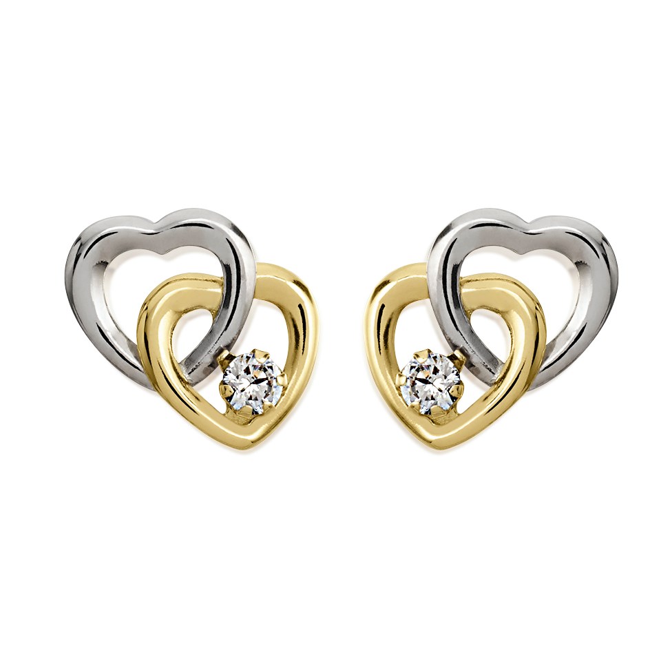 9ct Gold Two Colour Cubic Zirconia Heart Stud Earrings - 8mm - G2944