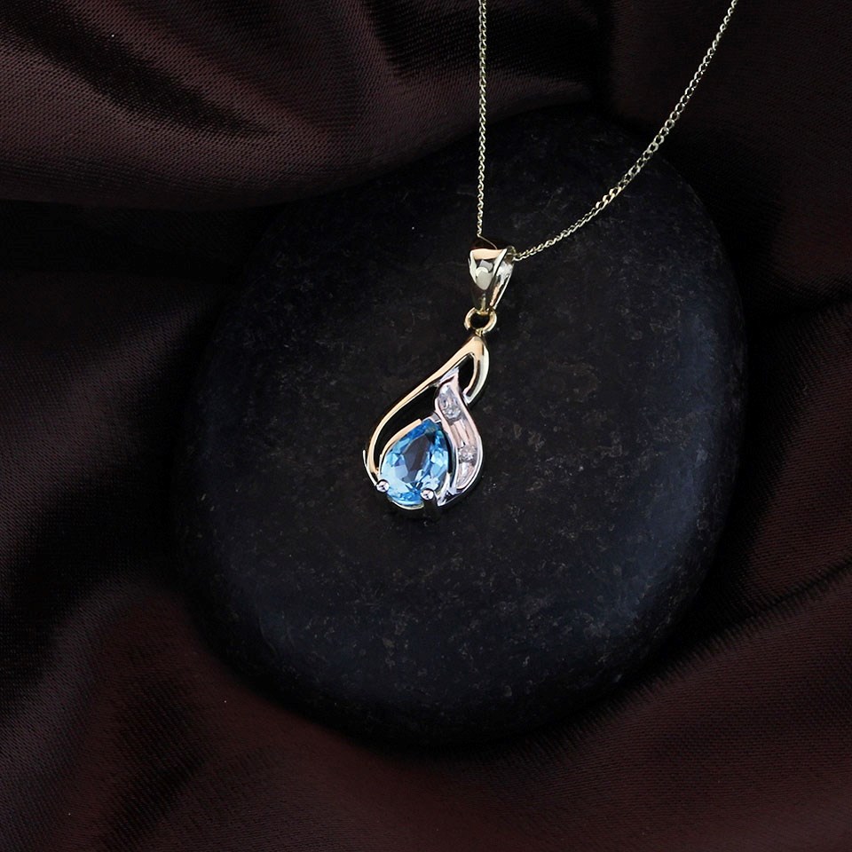 9ct Gold Two Colour Diamond And Blue Topaz Necklace - R8295