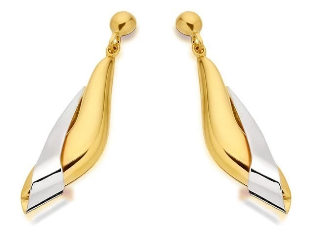 9ct Gold Two Colour Drop Earrings - total 30mm drop - EXCLUSIVE - G1856