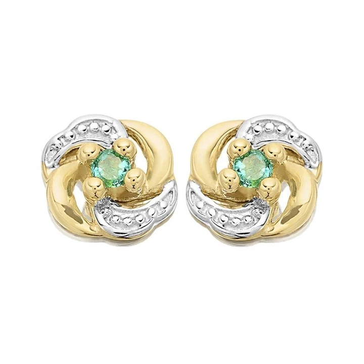 9ct Gold Two Colour Emerald Swirl Stud Earrings - 10mm - G0912