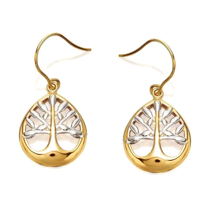 9ct Gold Two Colour F.Hinds Tree Of Life Hook Wire Earrings - 30mm drop - G1010