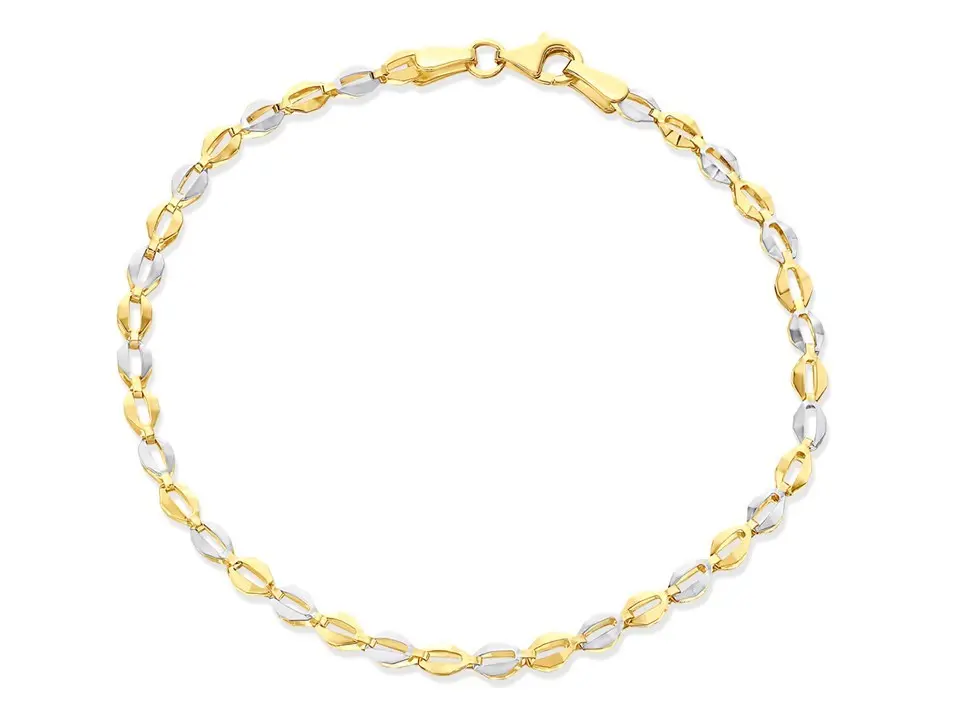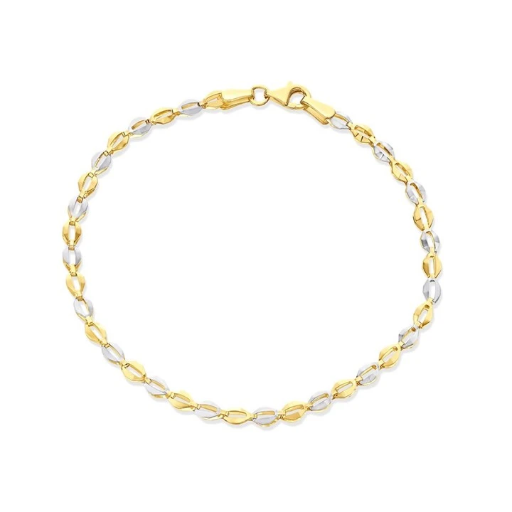 9ct Gold Two Colour Faceted Oval Link Bracelet - 7.5in - G6457