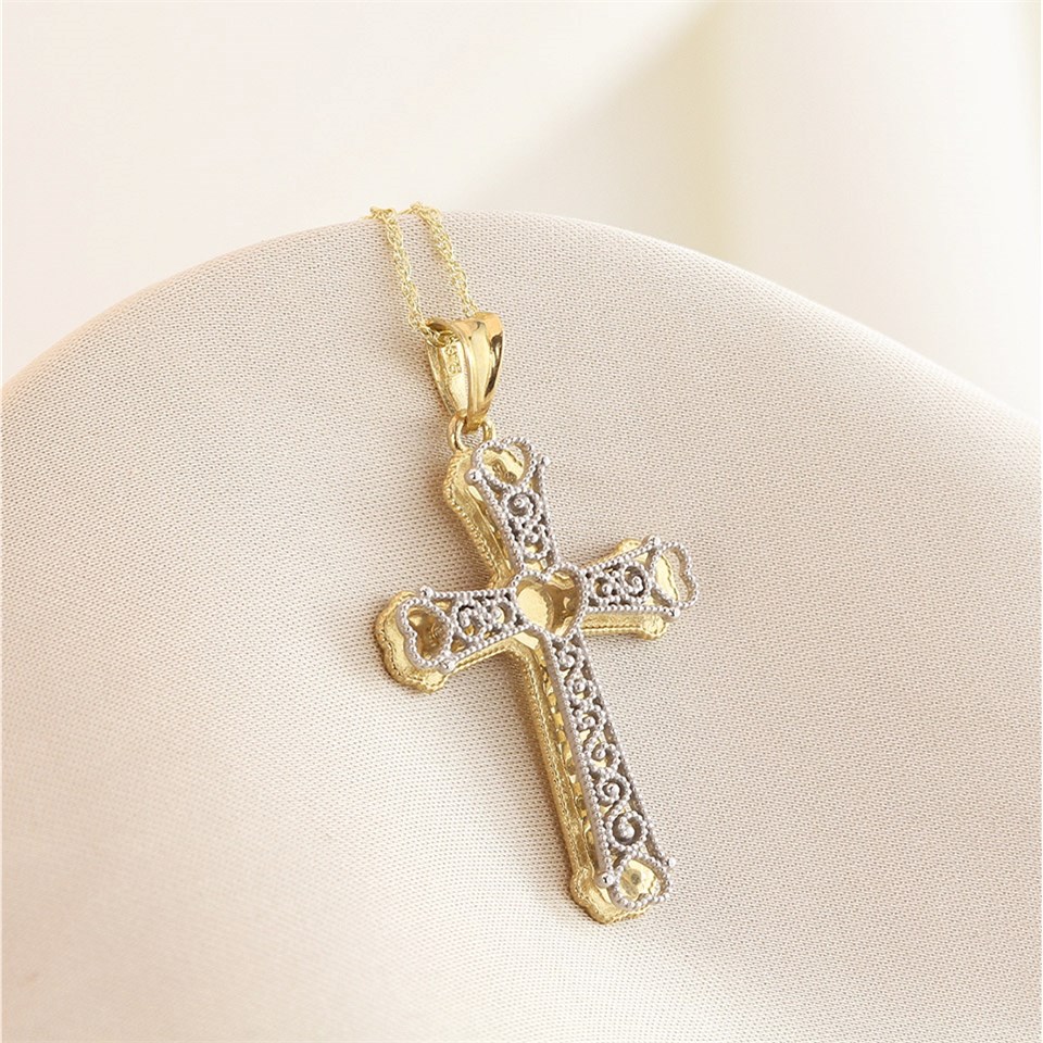 9ct Gold Two Colour Filigree Cross And Chain - R6610