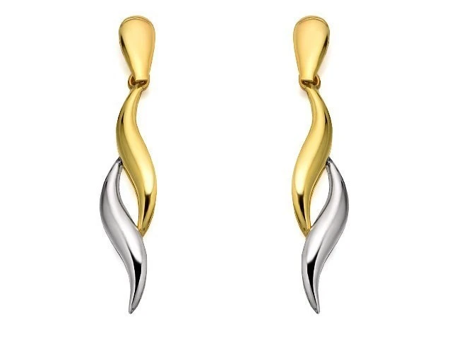 9ct Gold Two Colour Flame Drop Earrings - 30mm drop - G1458