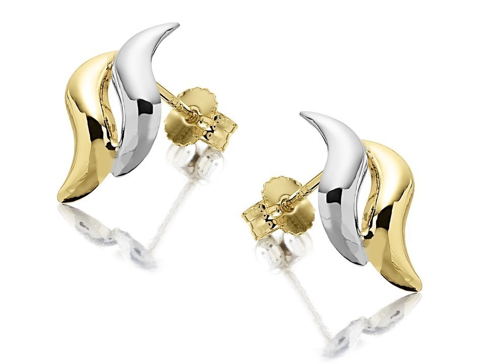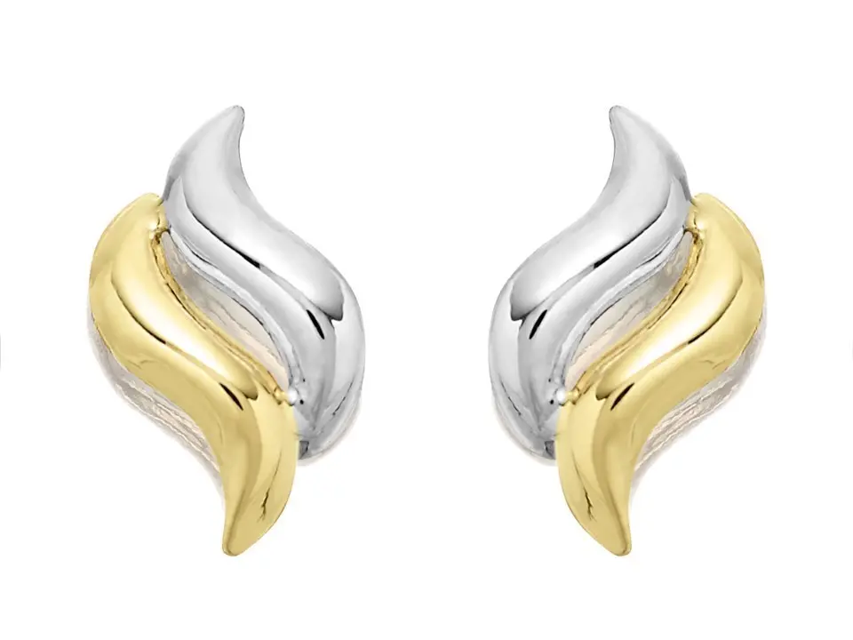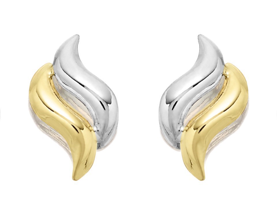 9ct Gold Two Colour Flame Stud Earrings - 11mm - G0164