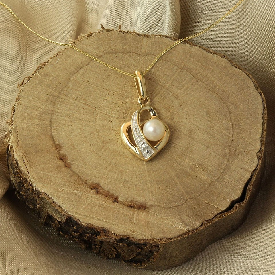 9ct Gold Two Colour Freshwater Pearl And Diamond Necklace - EXCLUSIVE - R7758