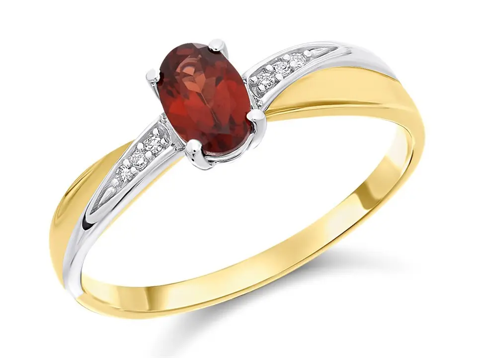 9ct Gold Two Colour Garnet And Diamond Ring - D8457