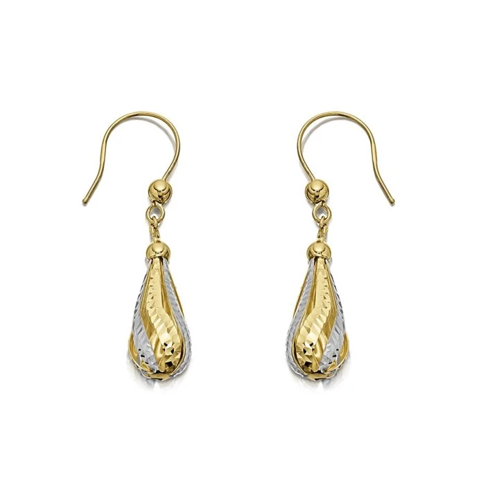 9ct Gold Two Colour Hook Wire Earrings - 20mm drop - G1006