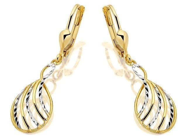 9ct Gold Two Colour Lattice Drop Earrings - 20mm drop - EXCLUSIVE - G1245