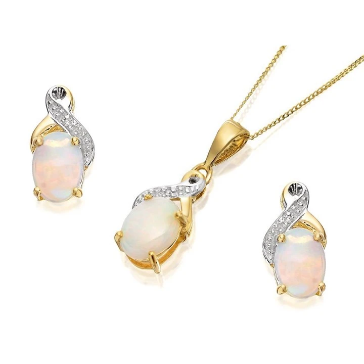 9ct Gold Two Colour Opal And Diamond Stud Earring And Pendant Set - GS0524