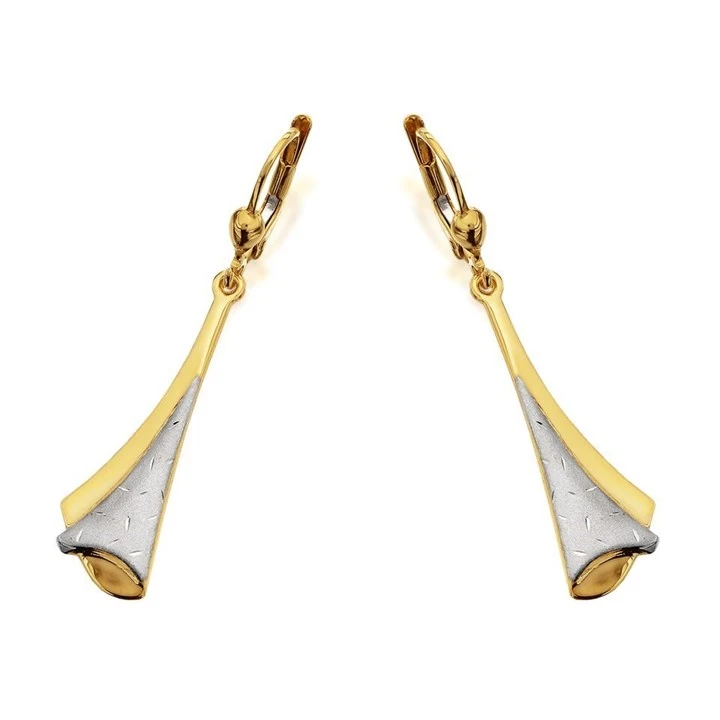 9ct Gold Two Colour Pleat Drop Earrings - 45mm drop - EXCLUSIVE - G1019