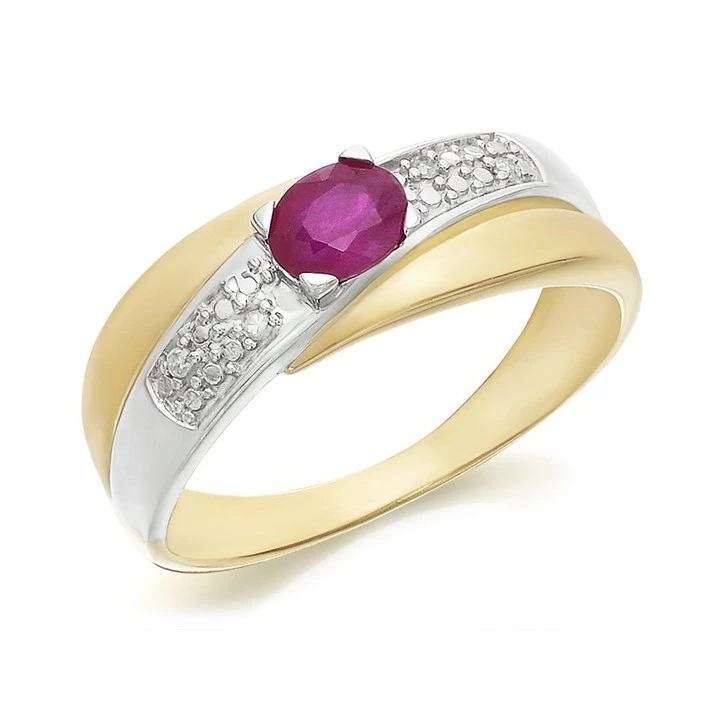 9ct Gold Two Colour Ruby And Diamond Crossover Band Ring - EXCLUSIVE - D7313