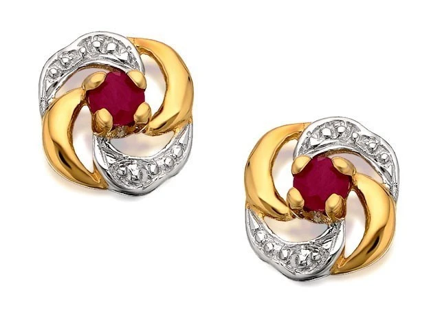 9ct Gold Two Colour Ruby Swirl Stud Earrings - 10mm - G0323
