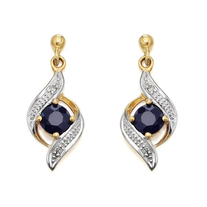 9ct Gold Two Colour Sapphire And Diamond Drop Earrings - EXCLUSIVE - D9477