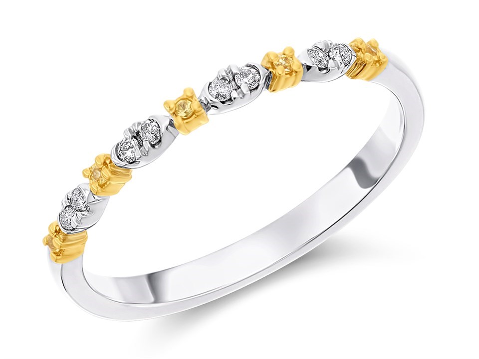 9ct Gold Two Colour Yellow Sapphire And Diamond Half Eternity Ring - 8pts - D8118