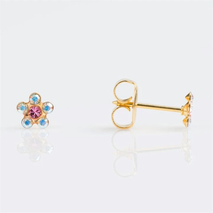 9ct Gold White And Pink Crystal Daisy Ear Piercing - 5mm - S75973