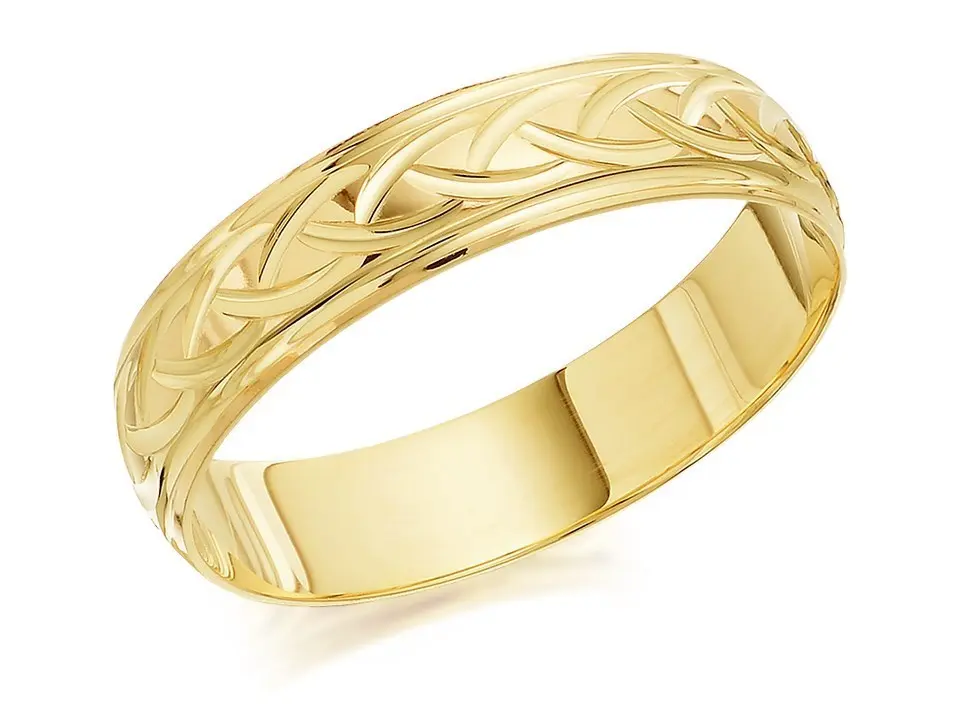9ct Gold Woven Diamond Cut Wedding Ring - 5mm - R4349