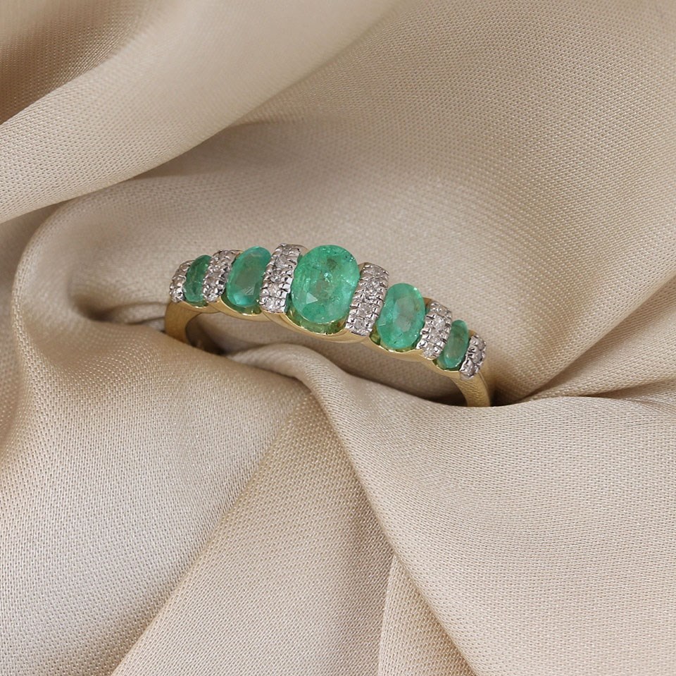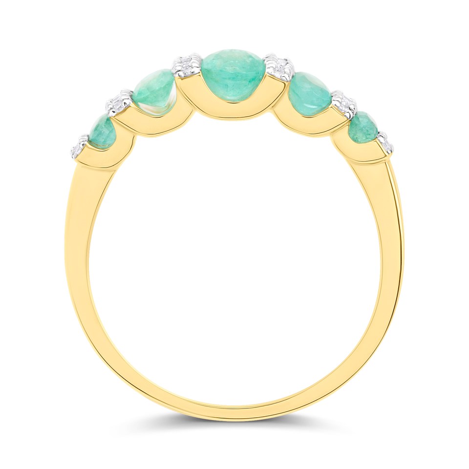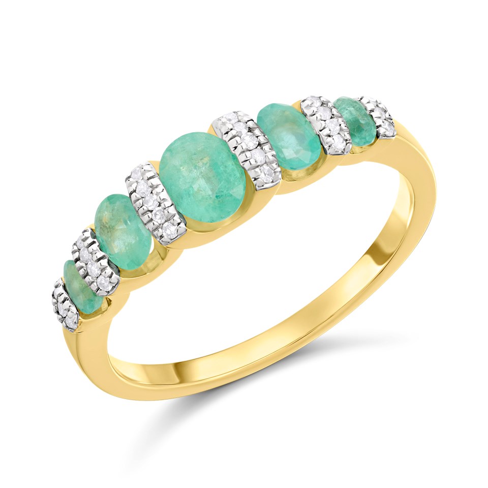 9ct Graduated Five Stone Emerald And Diamond Ring- Size Z only - Z51200