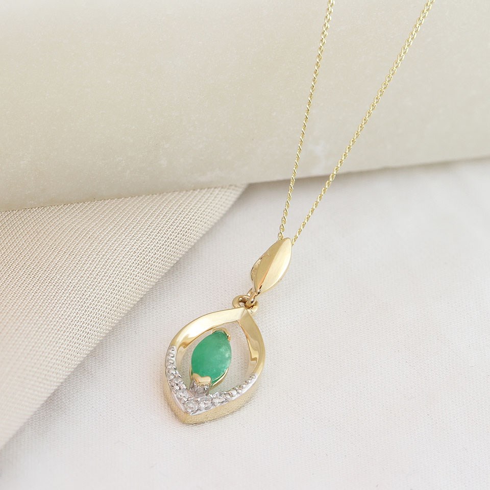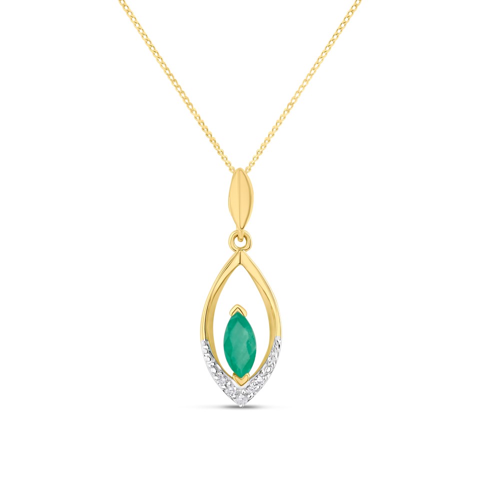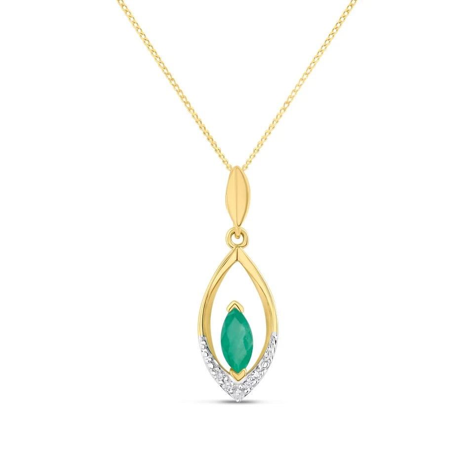 9ct Marquise Emerald And Diamond Necklace - D97138