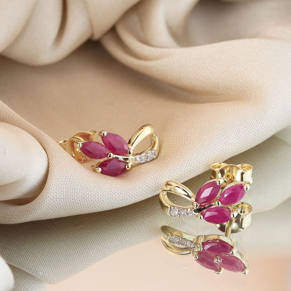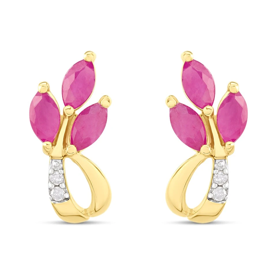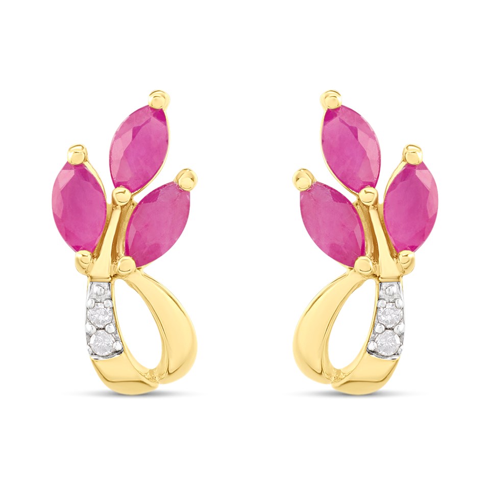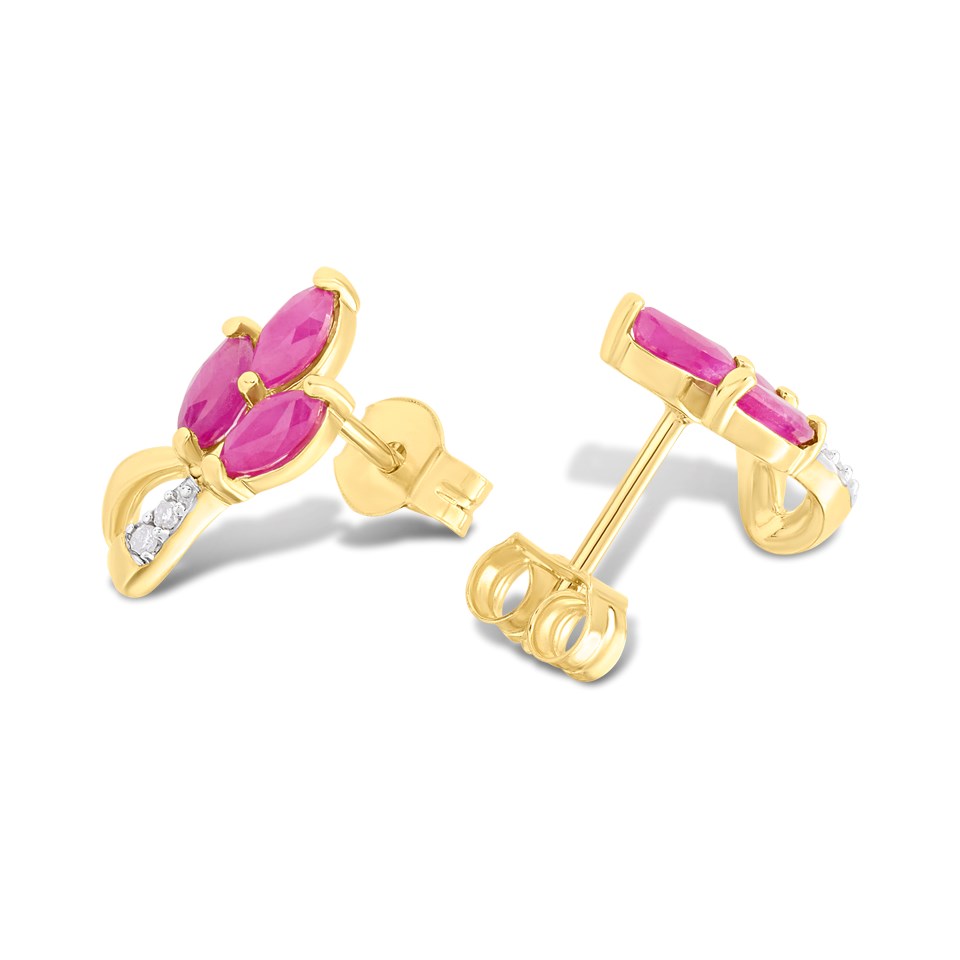 9ct Marquise Ruby And Diamond Stud Earrings - D94135