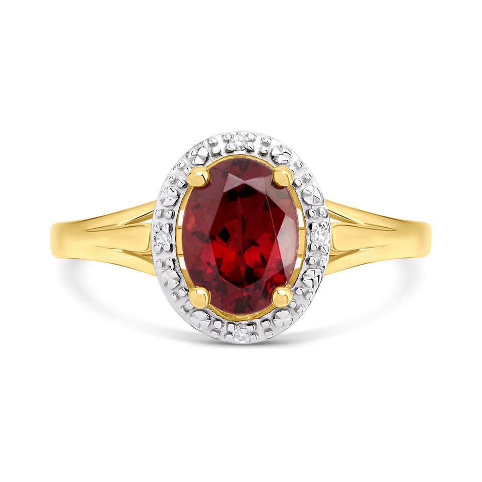 9ct Oval Garnet And Diamond Cluster Ring - D8497