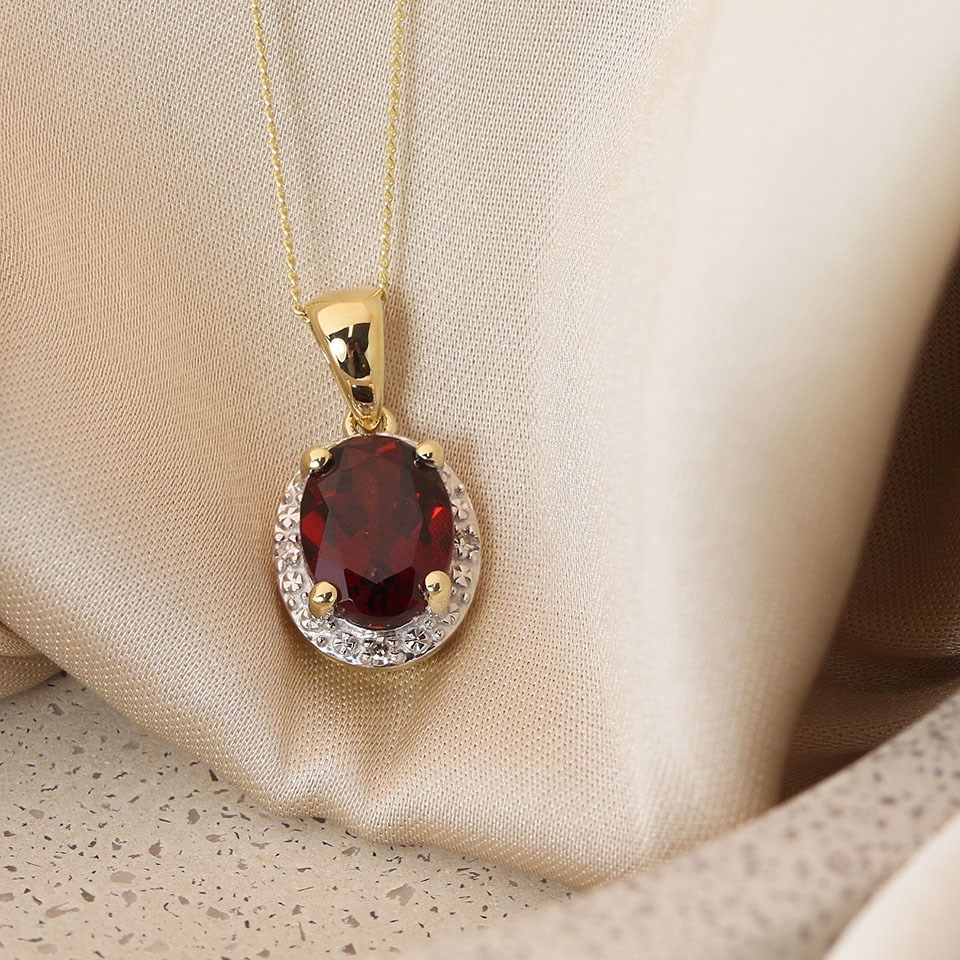9ct Oval Garnet And Diamond Necklace - D97130