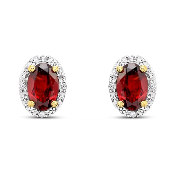9ct Oval Garnet And Diamond Stud Earrings - D94137